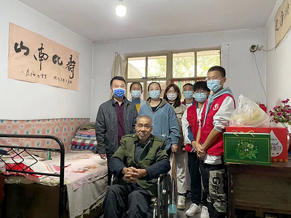 临床医学系党总支由党员干部、入党积极分子、团学骨干组成的“爱心接力团队”已经义务帮扶郭合林老人长达15年。15年里,无论寒冬酷暑,志愿者们坚持每隔两周就到老人家,打扫房间、清洗衣褥、修理物品、测量血压等,照料着老人生活的方方面面。他们还经常给老人带去报刊和书籍,陪他读报、聊天,为老人带去心灵的关怀和慰藉。光阴似箭、时光流转,爱心接力棒一届传一届,先后共有党员、师生2000余人参与了义务帮扶活动。志愿者们为老人奉献了爱心、传递了温暖;同时,老人也用他身残志坚的向上精神和乐观积极的生活态度感染和影响着每一位志愿者。