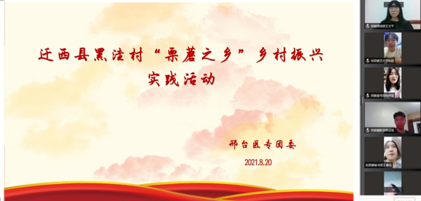 为进一步引导和帮助广大青年学生上好与现实相结合的“大思政课”,切实体会党的百年成就,以实际行动投身乡村振兴战略实施,自7月28日起,学校团委“青春聚力振乡村,服务三农走基地”三下乡乡村振兴社会实践小分队10余人,赴唐山市迁西县开展实地调研活动。