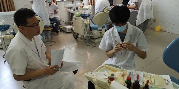 6月22至23日,口腔医学系在实训室举办了模拟口腔助理医师六站式技能考核,口腔教研室全体教师担任考官,2019级普专口腔医学专业1010名学生参加考核。