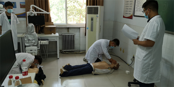 学生正在考核心肺复苏