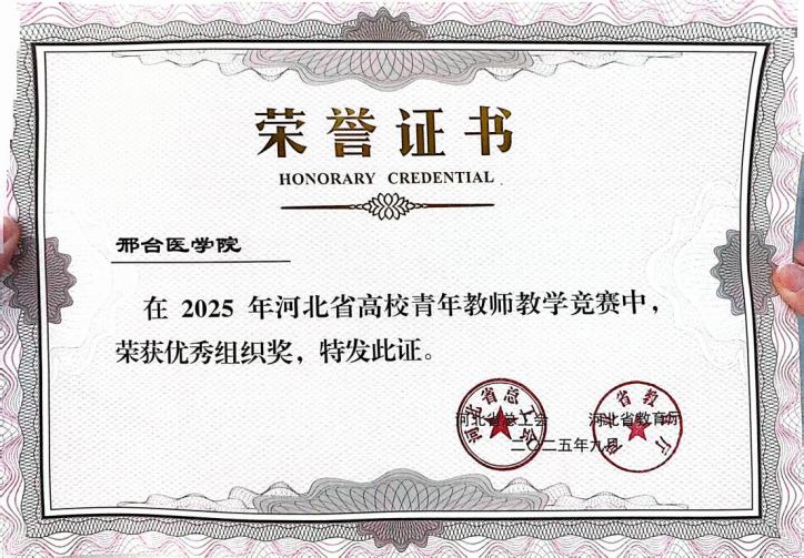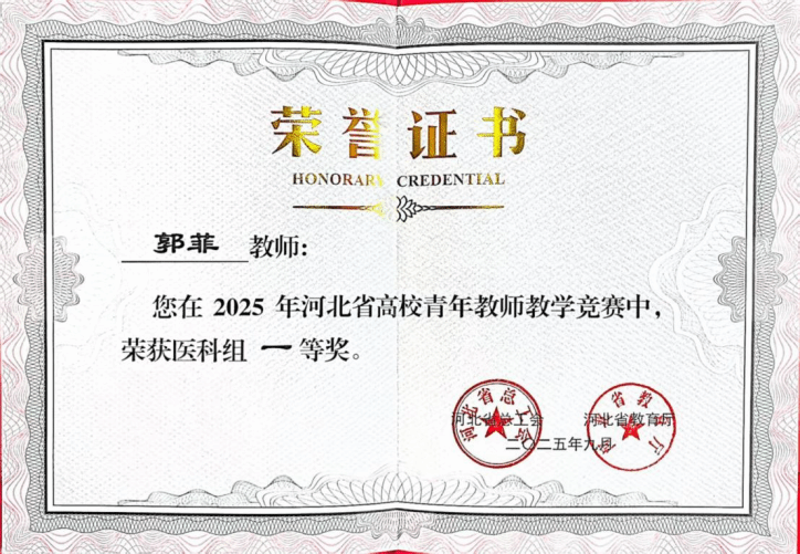9月30日,由河北省总工会、河北省教育厅联合主办的全省高校青年教师教学竞赛圆满落幕。基础医学部药理教研室郭菲老师凭借扎实的教学功底、创新的教学设计与出色的现场发挥脱颖而出,斩获一等奖,2007太阳集团荣获“优秀组织奖”。