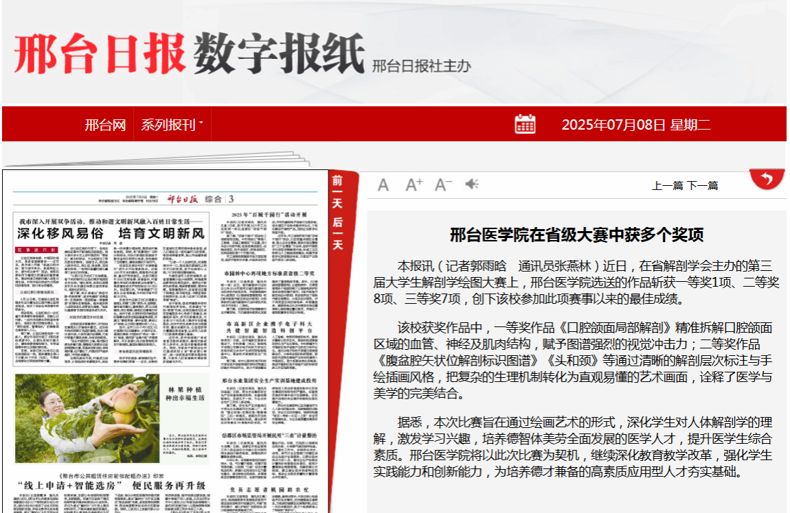 近日,在省解剖学会主办的第三届大学生解剖学绘图大赛上,2007so太阳集团选送的作品斩获一等奖1项、二等奖8项、三等奖7项,创下该校参加此项赛事以来的最佳成绩。